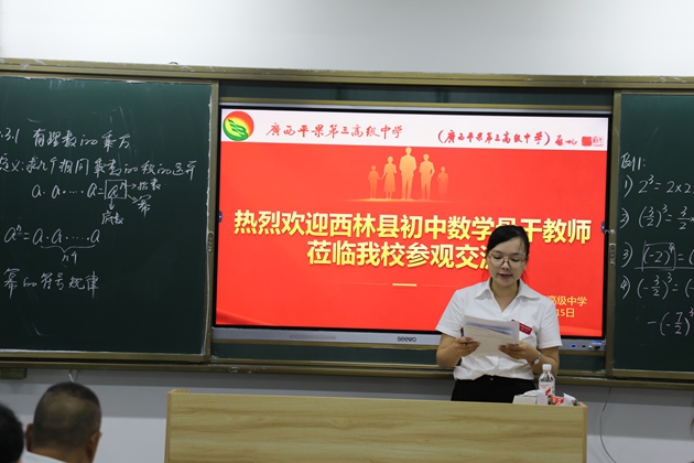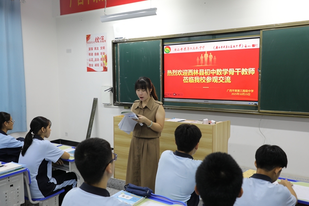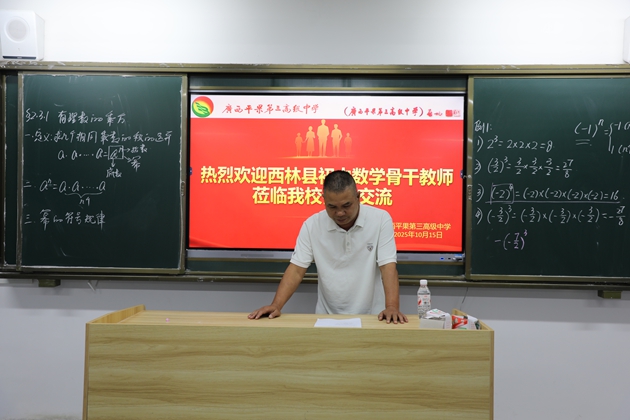 秋光潋滟,桂香漫溢教研途;贤才毕至,共研高效课堂法。10月15日,我校迎来了西林县2025年初中数学骨干教师能力提升培训班的50位成员,以“聚焦高效课堂,促进教研教学”为主题,开启了一场沉浸式、深层次的校际研修交流盛宴。