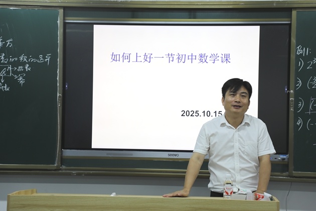 研思碰撞明方向,传经送宝助提升。课后评课环节,科研处副主任农海涛老师主持交流,众教师围绕教学设计与课堂生成进行探讨,直抒己见、畅所欲言、坦诚交流,在思想碰撞中凝聚教学智慧。随后,初三备课组长张军老师聚焦中考备考,结合教学实践分享策略与经验,为研修团提供了清晰的备考思路;副校长阮国辉老师以“如何上好一节初中数学课”为题作报告,从教学设计到课堂驾驭,从学情把握到评价激励,拆解教学细节、传递育人匠心,让交流真正成为干货满仓的成长契机。