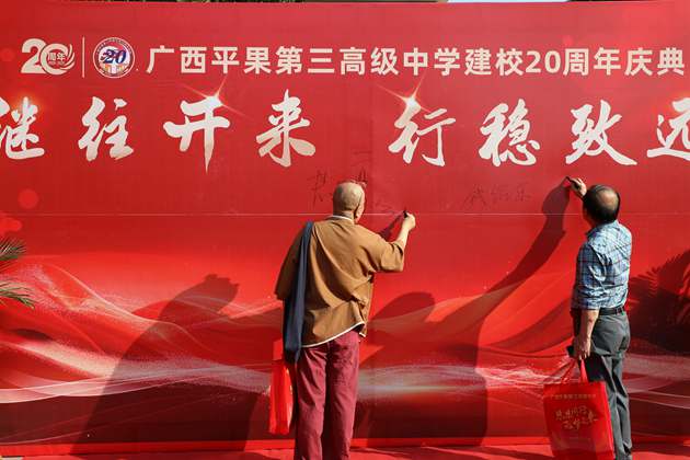 秋阳暖人,惠风和畅。2025年10月18日,广西平果第三高级中学全体师生、四海校友与各界宾朋齐聚一堂,在高文广校长的主持下,建校二十周年庆典的盛大帷幕正式拉开。