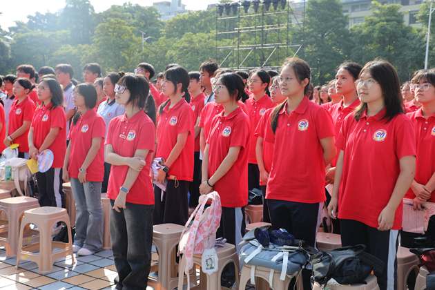 大会伊始,在全体与会者的肃立注目下,伴随着雄壮的国歌与昂扬的校歌,五星红旗与学校校旗先后冉冉升起,迎风招展,昭示着学校二十年来的光荣与梦想。紧接着,全体人员怀揣敬意,整齐划一向圣师孔子行鞠躬礼,瞬间将现场氛围引入崇高之境。这一融汇了现代爱国主义与中华优秀传统文化尊师重道精神的独特开场,不仅为庆典奠定了庄重的基调,更生动诠释了平果三中“筚路蓝缕、玉汝于成”的创业史诗与“桃李芬芳、硕果累累”的育人华章。