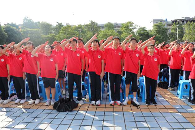在学生代表韦长杞充满深情与力量的发言中,平果三中的二十年华诞被赋予了青春的注脚。他通过校园电子屏的更新、跑道的变化等细微之处,生动描绘了母校在硬件设施上“变大变强”的华丽蝶变。然而,他更深刻地指出,学校始终不变的,是那份立德树人的教育初心与老师们无处不在的辛勤守护与暖心陪伴。最后,他代表全体学子许下庄重承诺:必将以笔为剑、不负韶华,在即将到来的高考中奋力拼搏,将感恩化为动力,为母校续写荣光,将这根凝聚着三中精神的接力棒坚定地传承下去!