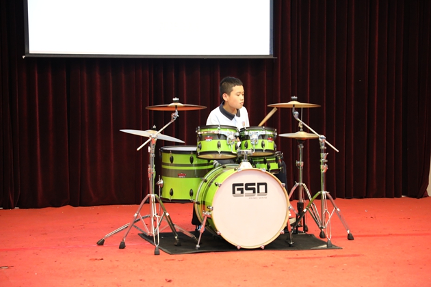 器乐专场精彩纷呈,架子鼓的激昂铿锵,从初中部到高中部,同学们以娴熟技艺驾驭着乐器,指尖捏紧鼓棒目光锁定鼓组这一刻不用迎合谁的节奏只需要跟着心跳敲出属于自己的“人生BGM”。