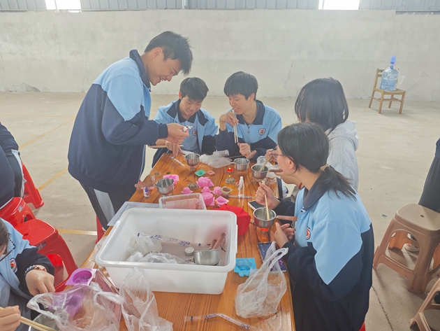 手工皂创作环节,尽显少年创意与匠心。从理解制作原理到动手操作,同学们在老师的讲解与指点下逐步探索手工皂的奥秘。同学们充分释放想象力与创造力,在融化的皂基中融入心仪的色彩与香气,精心勾勒造型纹样,小心翼翼入模定型。待皂体凝固脱模,一块块色彩斑斓、造型别致的手工皂惊艳亮相,或清新雅致、或灵动可爱、或简约大气,每一件作品皆是创意与巧手的结晶,同学们在指尖劳作中感受手工艺术的独特魅力,深刻体悟创造带来的无限乐趣。