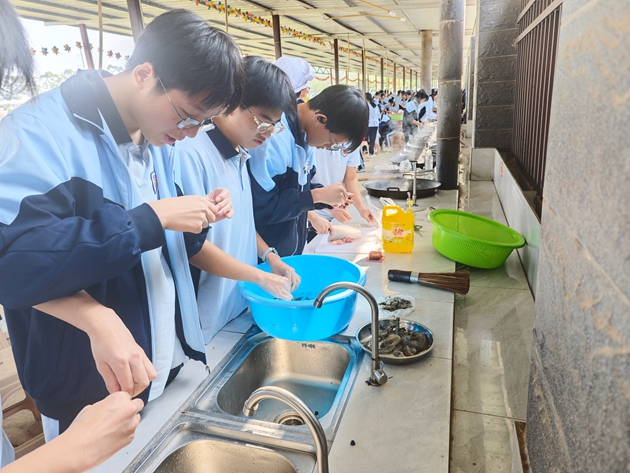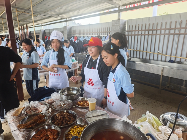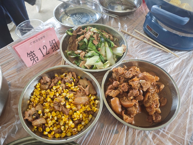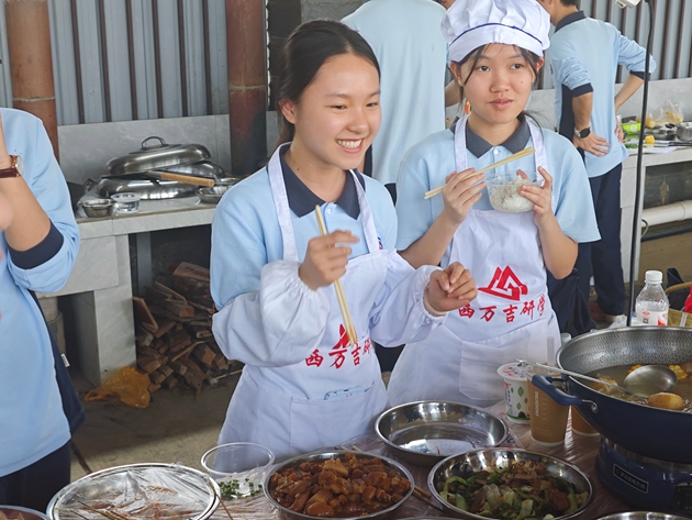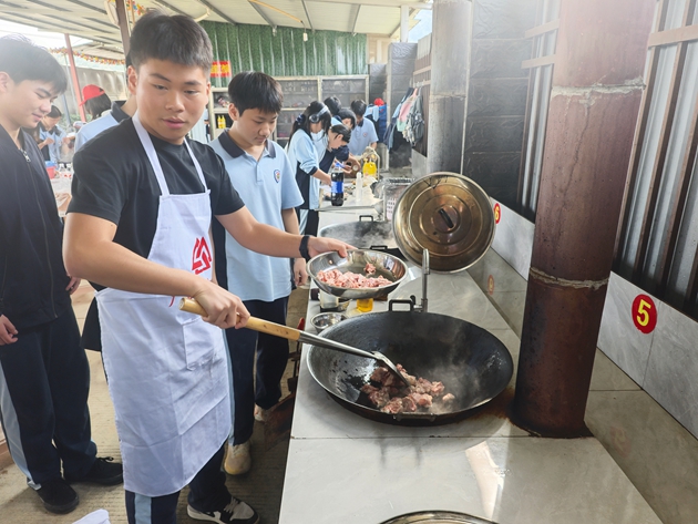 厨王争霸赛的开展,将研学氛围推向高潮。在厨房区与青菜园组成的实践天地中,同学们以小组为单位展开精彩厨艺比拼。大家分工明确、默契配合,有人穿梭菜园采摘新鲜食材,有人专注择洗切配,有人掌勺精准掌控火候,灶台间火光跳动,锅铲碰撞声与欢声笑语交织成悦耳乐章。新鲜蔬果与地道食材在同学们的巧手下,纷纷化作一道道色香味俱全的佳肴,餐盘里的美味既彰显着动手能力的显著提升,更凝聚着团队协作的深厚力量,烟火气中满是劳动的喜悦与集体的温暖。