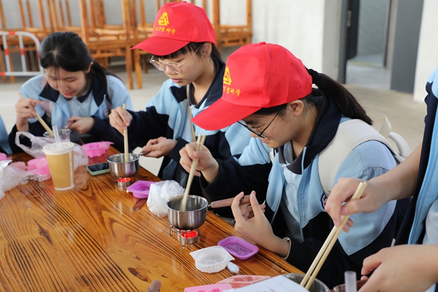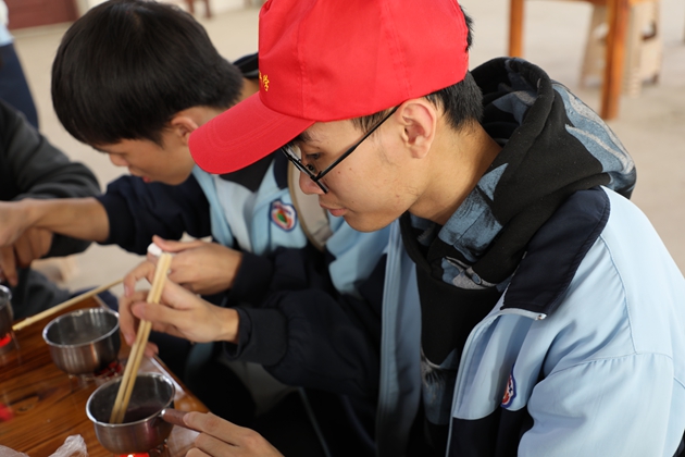 同学们凝神聆听,随后分工协作,默契无间。温火慢熬,粒粒珍珠渐染晶莹;茶乳相融,缕缕甜香弥漫空间。指尖流转之际,杯杯奶茶凝结温暖;唇齿甘甜之中,欢乐与成就感盈盈漫溢。从材料准备到成品分装的层层把关,更让大家深刻体会到,一杯优质奶茶的诞生,既需要严谨的科学配比,更离不开对每一处细节的极致追求、对每一道工序的专注打磨。笑语融融间,同学们于甘醇里品味劳动之趣,更在舌尖与心间的双重体验里,读懂了寻常美味背后的科学奥秘与匠心精神。