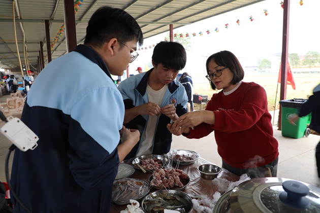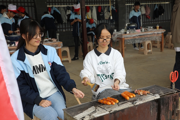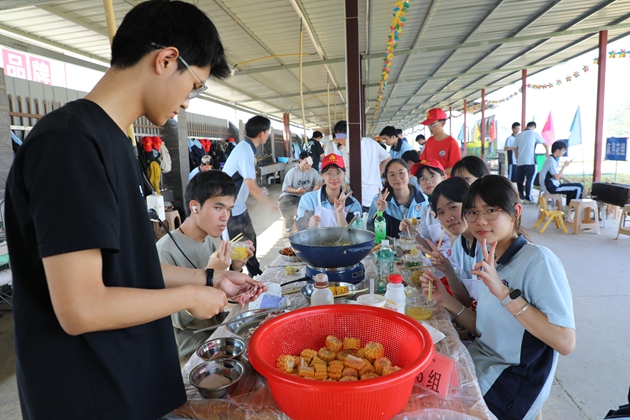 灶火跃动映照着专注面庞,锅勺交响交织着欢声笑语,青蔬时材在巧手下蜕变为道道佳肴。烹饪好的菜肴,色香味俱全,不仅是手艺的见证,更是团队同心同力的缩影。烟火升腾处,劳动之乐与同窗之情温暖交融。