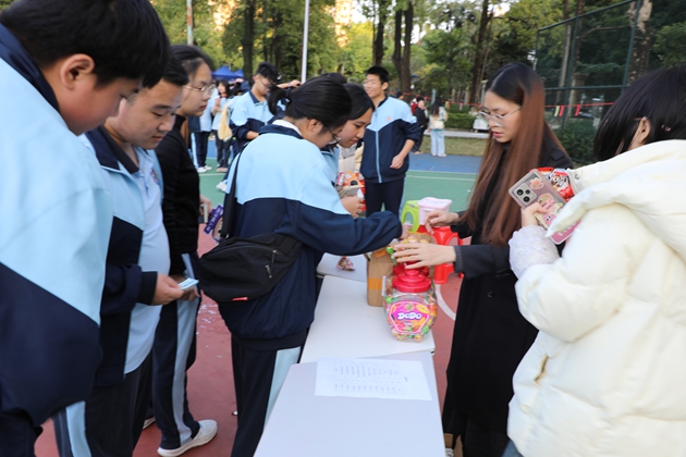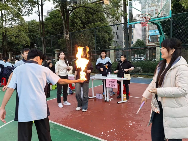 校园文化艺术节游园活动在篮球场欢乐开启,七大特色游戏轮番上阵,丰厚奖品等你来赢。在这里,你可以在"焰色交响曲"中见证化学元素的绚丽变色,在"一起来找茬"里比拼眼力与细心;挑战"正字反写"考验手脑协调,参与"游戏接龙"解锁知识乐趣;还有"夹纸运杯"的默契协作、"蒙眼原地踏步60秒挑战"的爆笑考验.以及酷炫的"火焰掌"实验带来的视觉震撼。每一项游戏都兼具趣味与挑战,完成挑战即可兑换奖券,徐福记棒棒糖、 QQ 糖、热烤鸡肉串等零食好物,还有精致笔记本,只要参与就有机会收入囊中!这场集趣味、知识、互动于一体的游园活动,为校园增添别样的艺术色彩。