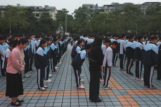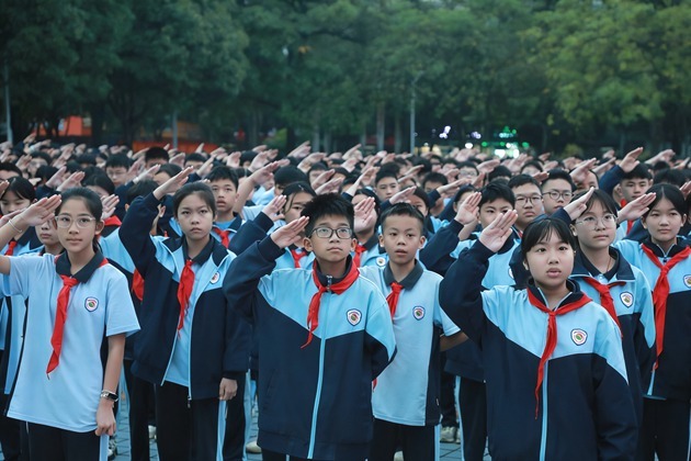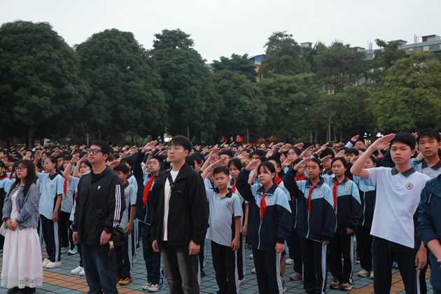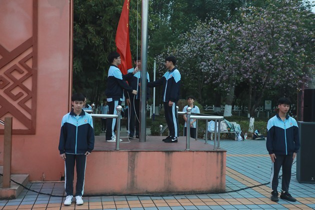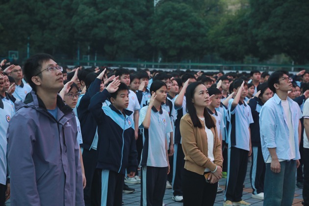 晨光熹微映红旗,清风拂面凝初心。典礼在庄严的国歌声中拉开序幕。全体师生肃立,伴随着激昂的旋律,注视着鲜艳的五星红旗冉冉升起,拉开了新学期奋斗的序幕。慷慨激昂的校歌,像一把火,烧红了少年的脸庞,同学们不由自主地放声合唱,声音里有滚烫的热忱,有不屈的倔强,那是独属于三中人的青春回响。