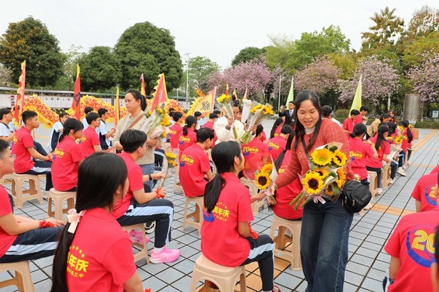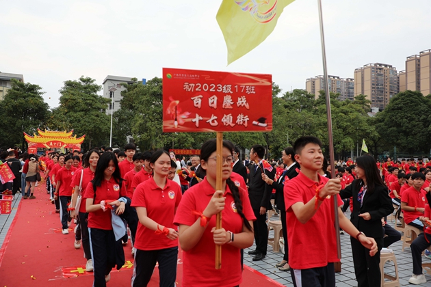 黄尚泽董事长作重要指示,他充分肯定了初三年级师生的不懈努力与良好风貌,指出百日冲刺是圆梦的关键阶段,希望全体师生以繁花满枝的校园为奋进底色,凝心聚力、奋勇争先,以攻坚克难的精神、精益求精的态度,全力以赴迎战中考,用优异成绩为校园再添荣光。