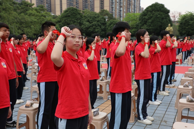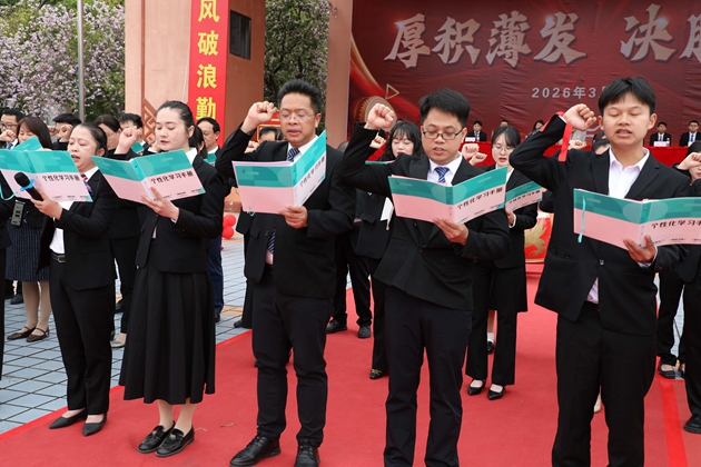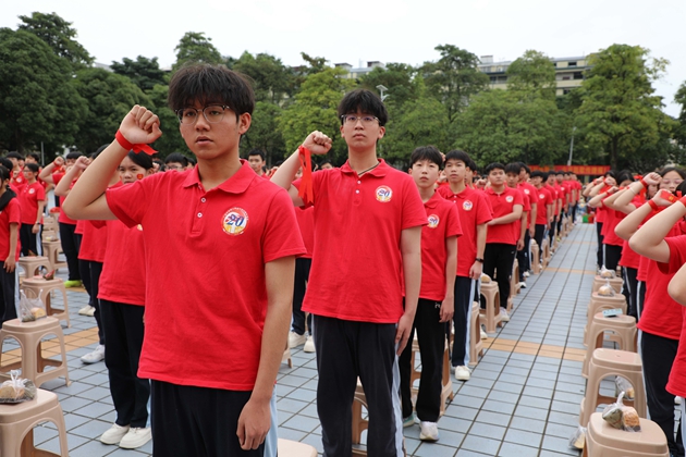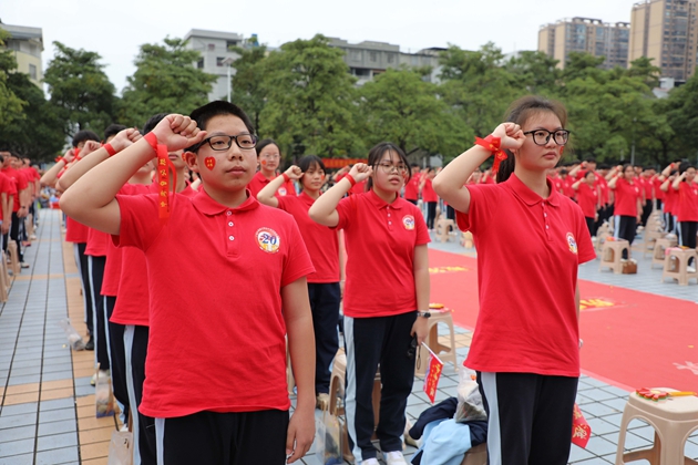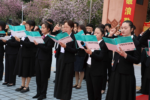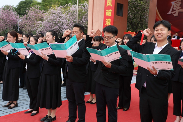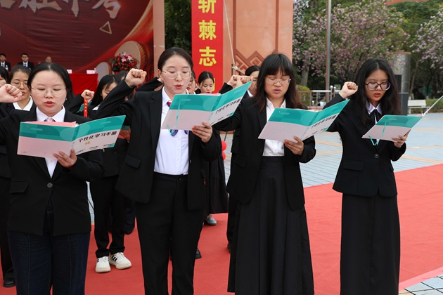 黄琪老师带领全体初三教师庄严宣誓,老师们以铿锵有力的誓言承诺,将以饱满的热情、严谨的教学,陪伴学子走过最后百日征程,为中考胜利保驾护航,誓言在红楼绿树间久久回荡。