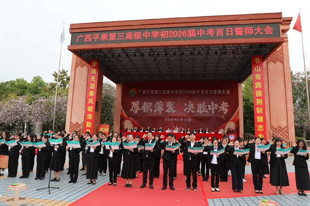 百日磨剑,一朝试锋;六月扬眉,金榜题名。此次百日誓师大会,既是出征的宣言,更是奋进的号角。平果三中初三学子们,以今日之誓为帆,以百日之拼为桨,在六月的考场上落笔生花、圆梦今夏;愿每一位逐梦者,都能不负韶华、不负初心,奔赴心中热爱,书写人生华章!