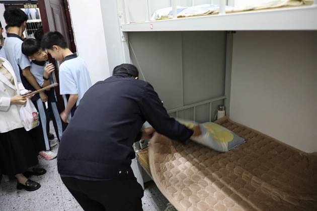 会后,由派出所民警、学校领导、班主任及安保人员组成的专项检查小组,深入学生宿舍开展全面清查。工作人员对学生床铺、储物柜、行李箱等区域逐一细致排查,重点清查管制刀具、尖锐器械等违禁物品,做到“发现一起、收缴一起、教育一起”。