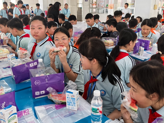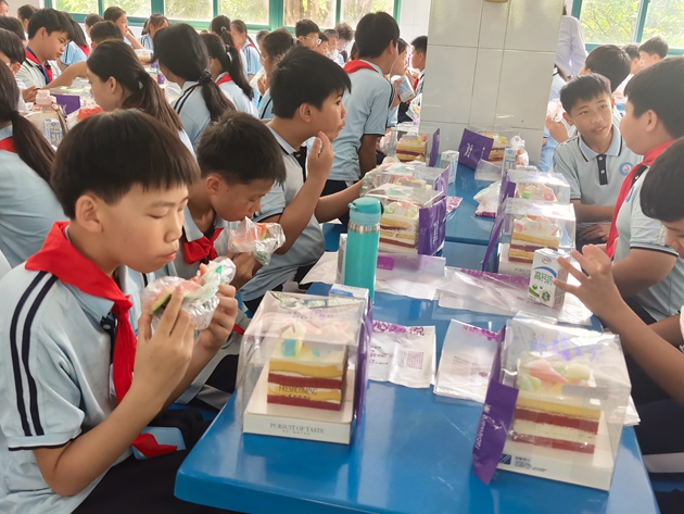 中午时分,清甜的香气在食堂里轻轻弥漫。精心准备的小蛋糕、温热醇香的牛奶等美味午点,搭配着温馨有序的用餐氛围,让孩子们在舌尖的甜意里,感受着三中细致入微的关怀。奶香与笑语交织,成为这场春日探访里最动人的注脚。