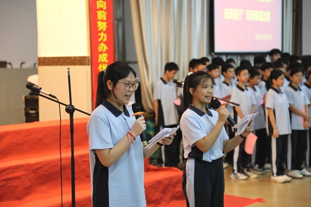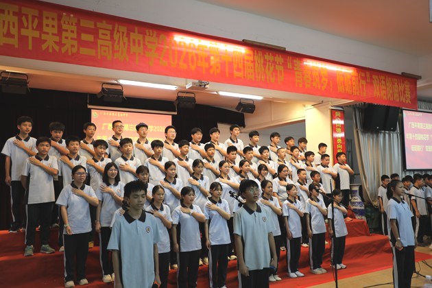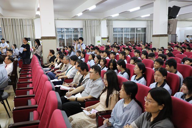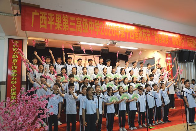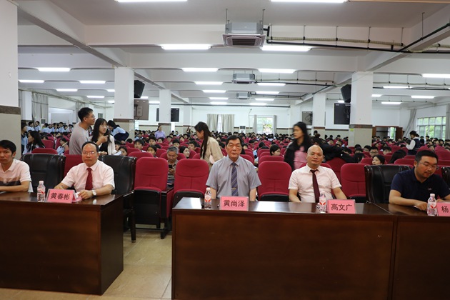 诗歌朗朗,琴声悠扬。3日31日晚,第十四届校园桃花节双语朗诵比赛(初中组)在校报告厅拉开帷幕。本次活动旨在促进平安和谐校园建设,引导学生认识美、感受美,推动全校师生学习中华传统诗词文化。黄尚泽董事长、高文广校长、黄春彬副校长、杨琦副校长、黄伟顾问、阮国辉副校长、谢炬燊副校长出席本次活动,高中部语文组及英语组教师代表担任本次比赛的评委,与全体师生共同见证这场精彩的语言艺术盛宴。