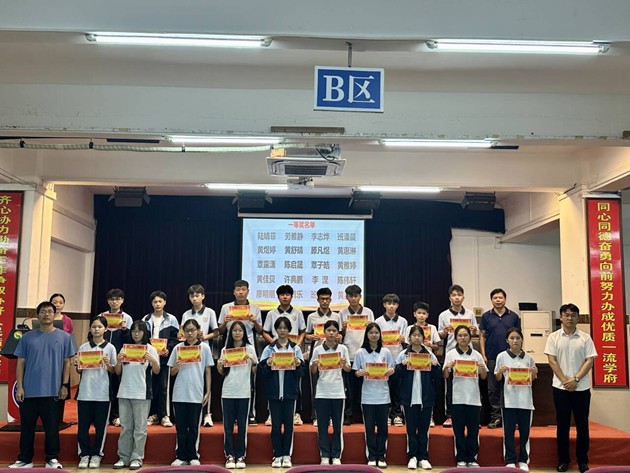 荣光加冕,榜样生辉。伴随着激昂的旋律,大会进入隆重的颁奖环节。年级副组长刘瑜老师依次宣读本次综合测评的优秀奖、进步奖、三等奖、二等奖、一等奖获奖名单。在全场热烈的掌声中,获奖同学精神抖擞、依次上台领奖。领导老师们为他们颁发荣誉证书,一张张奖状见证着日积月累的付出,一份份荣誉凝聚着坚持不懈的汗水。掌声与喝彩交织,期待与鼓舞同行,现场洋溢着奋进向上、争先创优的浓厚氛围。