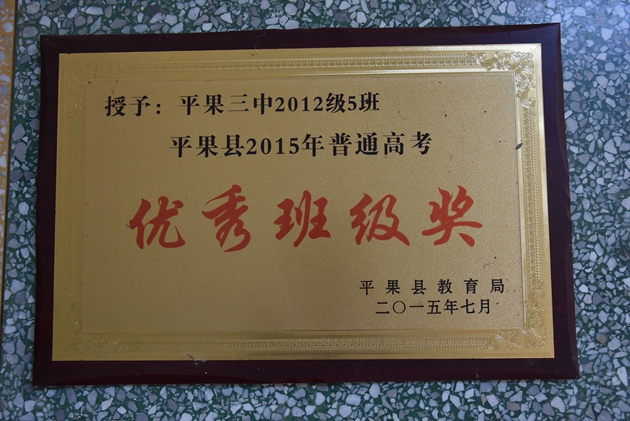 2012级5班获平果县2015年普通高考优秀班级奖