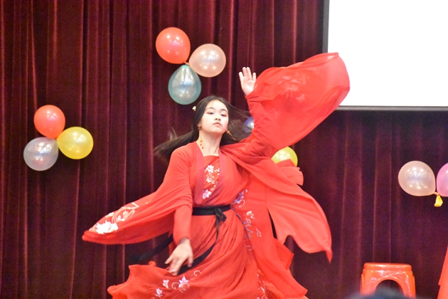 本次比赛共有十二个参赛节目。高二(2)班的农惠清同学以一支古香古色的舞蹈《长安十二时辰》拉开了比赛的帷幕,爵士舞《我们俩》带动了全场的气氛;接下来潇洒律动的架子鼓、俏皮可爱的群舞、柔中带刚的拉丁舞、动感十足的街舞、满怀深情的朗读、醋劲十足的吉他弹唱均都赢得同学们的阵阵喝彩声。