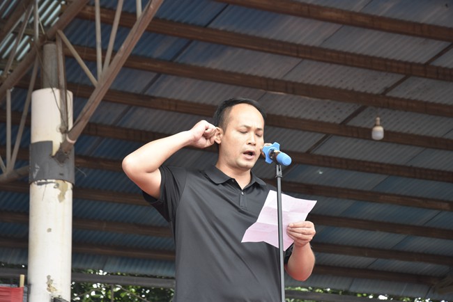运动员代表李苏华同学和裁判员代表黄卫志老师在宣誓中表示将坚决遵守大会纪律,赛出水平,赛出风采,忠于职守,准确严明,公平公正,以积极饱满的热情参与本届运动会。