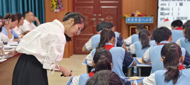 平果八小高苗苗老师《人物描写一组》的写作课,让听课的老师们了解了小学课堂和初中课堂的不同。这堂课上,在高苗苗老师耐心引导下,同学们学会运用动作描写刻画人物形象,并在阅读过程中抓比喻式动作、连续性动作,体会人物形象和表达效果,同时学会用比喻式动作、连续性动作来写人,把读与写融合起来。