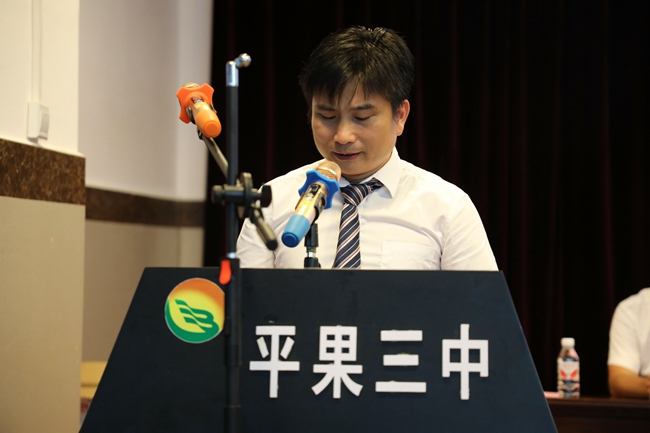 父母以厚重如山的爱和宽阔如海的胸襟铸造了一双隐形的翅膀,正是这一双翅膀带领学生飞越重重难关。舐犊情深,一路的成长有家长的护航,初三(3)班陆可昕同学的爸爸陆伟先生代表全体家长发言。他首先感谢学校以及老师们对孩子三年来的陪伴和培养。也表示了每位家长都能够在孩子中考这样的人生重要时刻,坚定地站在孩子的身后给予最大的鼓励,做最坚强的后盾和最温柔的依靠。情真意切的祝福,鼓励同学们带着美好的期望飞得更高更远!
