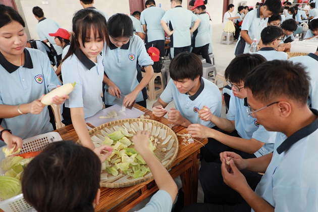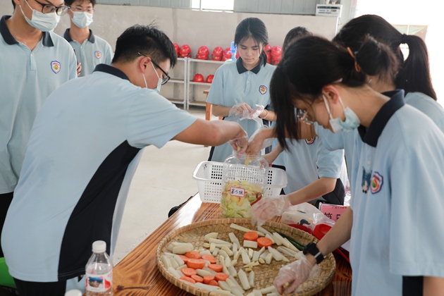生活是一场味蕾的冒险,同学们分组开火,激烈角逐,厨王争霸,定格生活。同学们在采摘中体验劳作之辛,在烟火中感悟生活之苦,又在清炒时蔬中品尝不平凡,在麻辣鸡块中咀嚼幸福,万般调料调出千变万化,尝尽酸甜苦辣,终知生活原味。