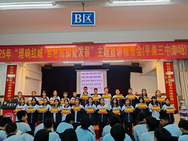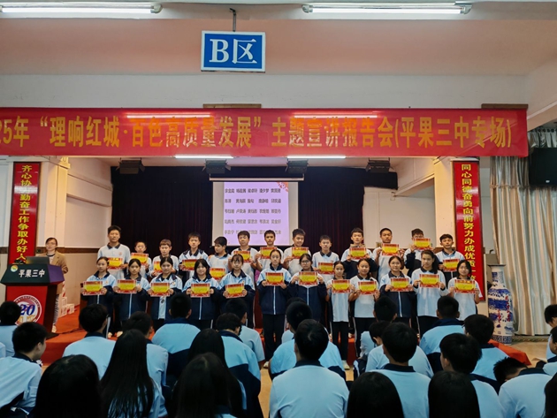 大会伊始,年级副组长黄艳娥老师宣读本次获奖名单。随着宣读的声音落下,获奖学子们昂首挺胸,依次走上讲台接过荣誉。闪耀的奖状不仅是对过往努力的肯定,更是对未来前行的鞭策,台下此起彼伏的掌声,成了校园里最动人的喝彩。