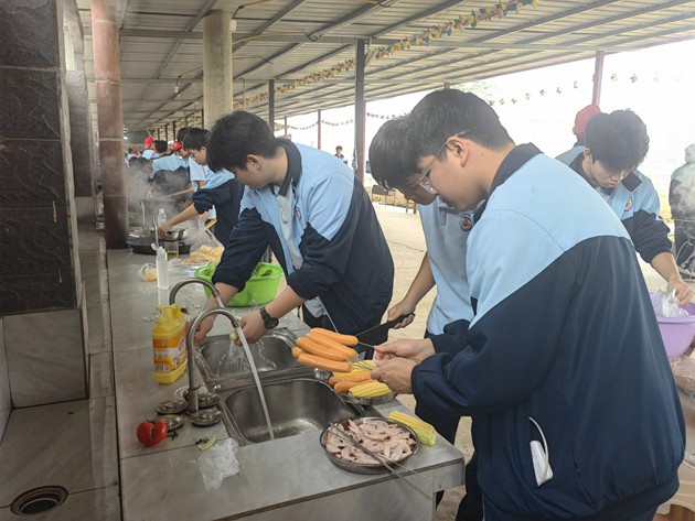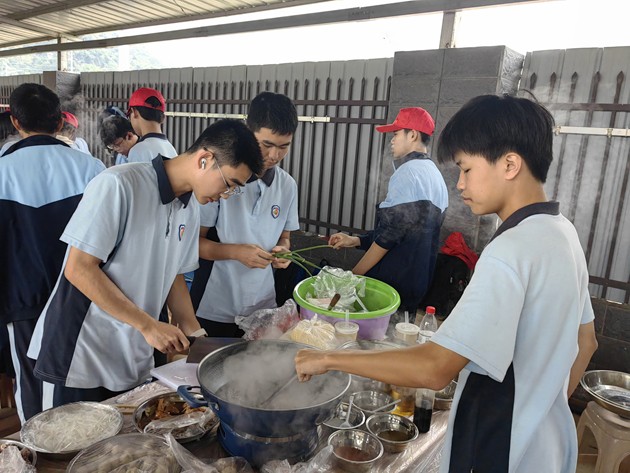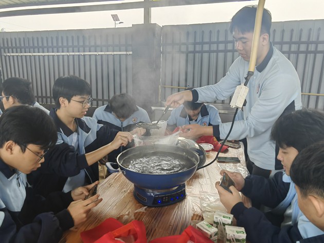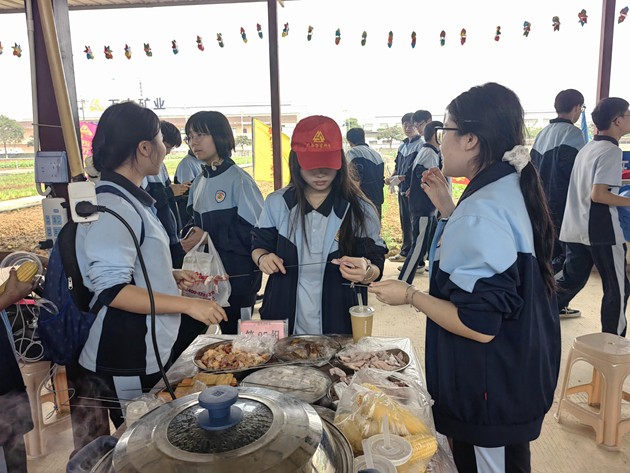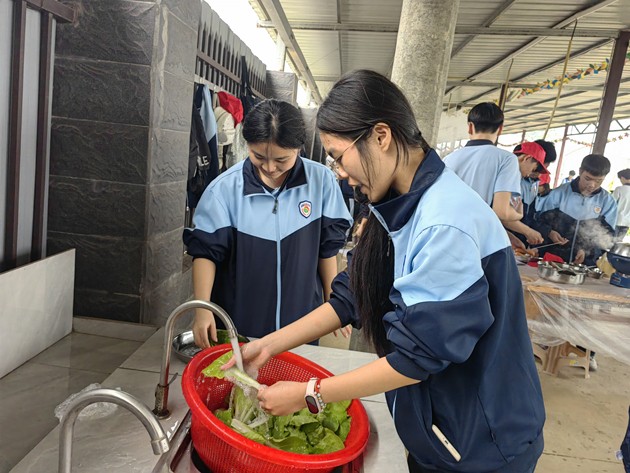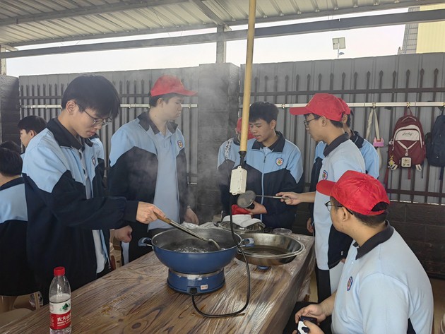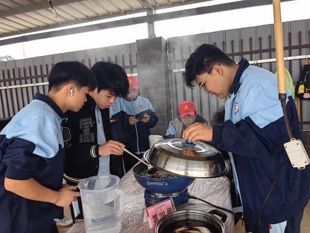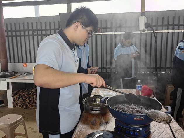 中午时分,“厨王争霸赛”热烈登场。各小组团结协作,挥勺弄铲,将寻常食材化为盘中佳肴。灶火映照着张张认真脸庞,香气萦绕在欢声笑语之间。评委团队由学生组建,他们细细品评,不仅评出“厨王”桂冠,更见证了各组同学们从食材到成品的创造之力。这不仅仅是一场烹饪比赛,更是一堂生动的生活教育课,让学生在柴米油盐中学会合作、学会创造。