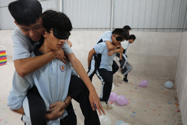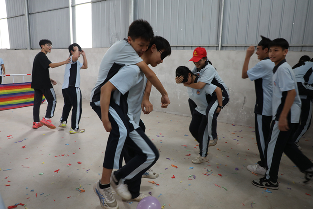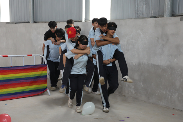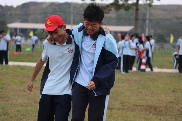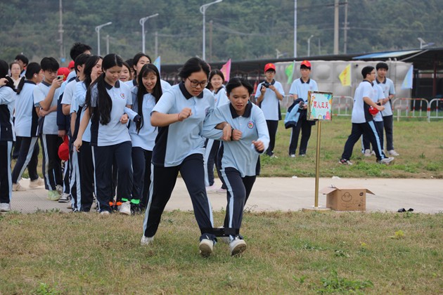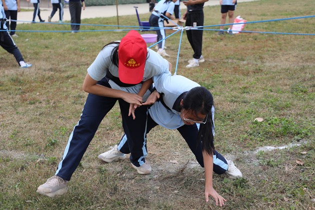 太阳西斜,下午的素质拓展活动将研学气氛推向高潮。“多角拔河”“两人三足”“蒙眼踩气球”“摸石过河”“沙包靶包”等游戏依次展开,草坪上跃动着青春的身影,呐喊声、欢笑声此起彼伏。同学们在运动中协调身心,在游戏中学会策略与信任,每一次冲刺、每一次配合,都是集体智慧与团队精神的生动展现。