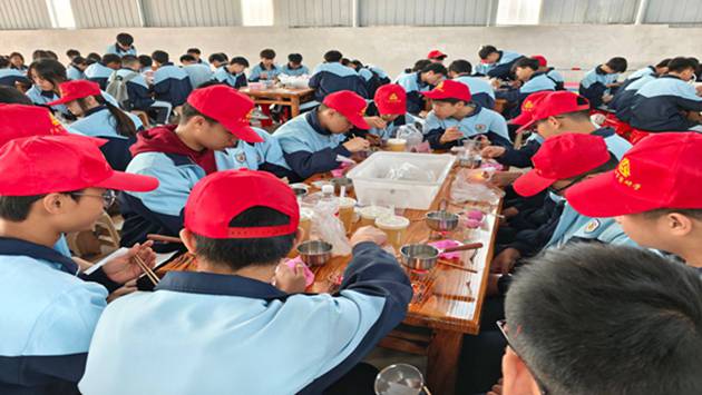 薄暮时分,基地被镀成一片柔软的金色。充实的研学活动即将落下帷幕,年级领导宣读厨王争霸赛的获奖小组以及素质拓展积分排名获奖班级。同学们在研学闭幕式后表示会牢记年级领导的总结与期盼:将研学精神转化为前行动力,以明确的目标、不屈的毅力,在成长之路上勇毅奔跑。
