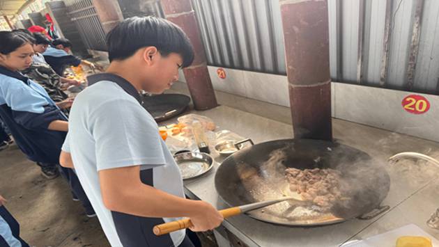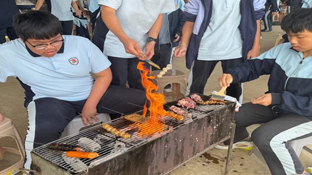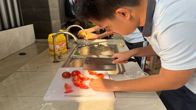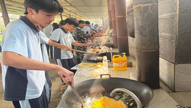 最炽热的交响在灶台与烧烤架前奏响。当第一缕油烟的香气腾起,所有眼睛都亮了起来,炒锅前掌勺的少年,被热气熏得眯起眼,却执拗地抿着唇翻动锅铲;烧烤架旁,同学们被跳跃的火星惊得轻跳,随即又被自己夸张的反应逗笑,银铃般的笑声混进了油脂“滋啦”的合唱里。一场蓄势待发的“厨艺大比拼”,在锅碗瓢盆的清脆撞击中拉开了序幕……