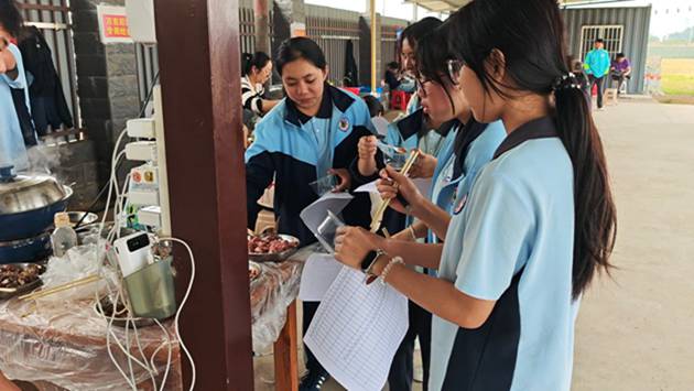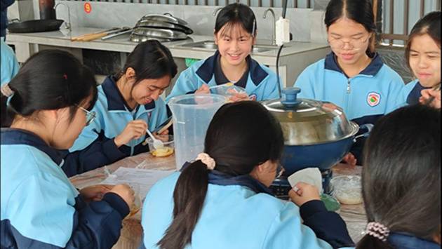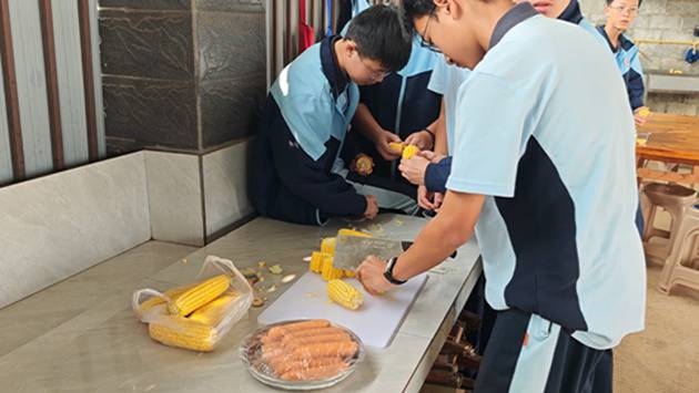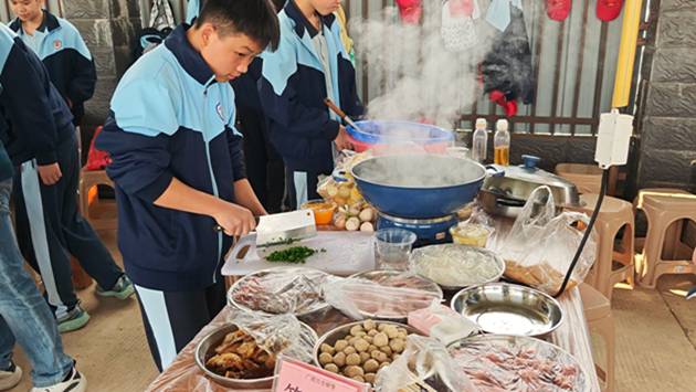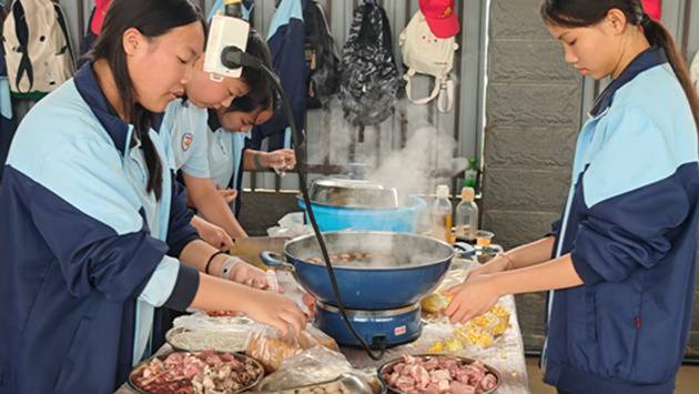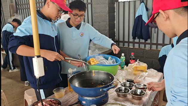 舌尖上的平果三中初2024级,一场“厨房协作战”就此展开:负责备菜的同学去基地菜园备完食材后,围在食材桌前,指尖翻飞间将新鲜蔬菜摘去老叶、剔除杂质,再放进清水里仔细冲洗,动作麻利又认真;掌勺的同学则提前检查灶台火力,待锅具预热后熟练倒油,随着“滋啦”一声响,将备好的食材下锅,手腕轻抖间不断翻炒,让食材均匀裹上油盐酱料;还有同学守在旁侧,随时递上调味料、擦拭灶台,或是构思菜品摆盘,整个操作区虽忙碌却井然有序。炒锅里的食材在火候中逐渐释放香气,有的小组专注烹制家常小炒,有的尝试炖煮暖胃菜品,还有的用心制作精致小菜,不同的烹饪手法交织出多样的风味。评委们走过每个灶台,都能看到色泽诱人、种类丰富的菜品,更能感受到小组间默契配合的温暖——哪怕偶尔出现“手忙脚乱”,成员们也会立刻补位、互相提醒,用协作化解小插曲。最终,评委团结合“分工效率、菜品丰富度、团队配合度”综合评分,评选出多个奖项。这场比拼没有复杂的菜品名称,却让同学们深刻体会到“分工明确、配合默契”才是完成任务的关键,更在烟火气里读懂了团队协作的价值。