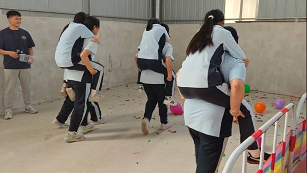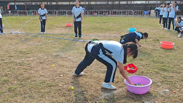 研学之旅的最后,趣味素质拓展环节将气氛推向高潮。“两人三足”“沙包靶盘”“多角拔河”“蒙眼踩气球”“摸石过河”等经典游戏轮番上演,同学们以班级为单位组队参赛积分,投入到了为班级荣誉而战的拼搏中。偌大的草地上加油声、欢笑声、欢呼声此起彼伏。这场充满活力的拓展活动,不仅让同学们在运动中释放了学习压力,更在并肩作战中增强了班级凝聚力,展现出初2024级学子积极向上、团结奋进的精神风貌。