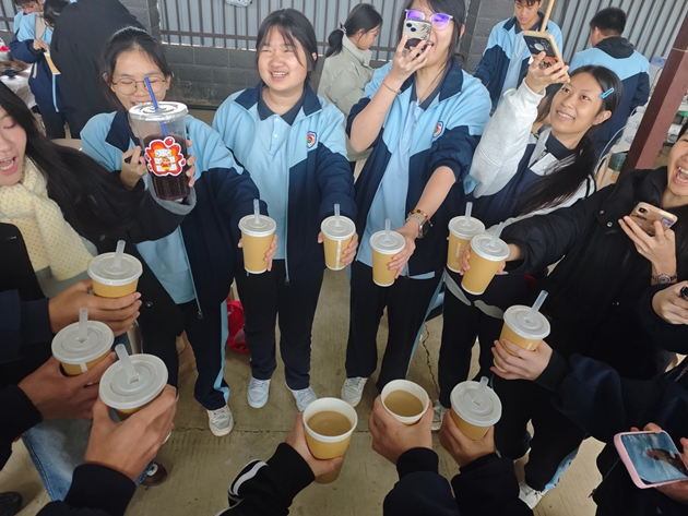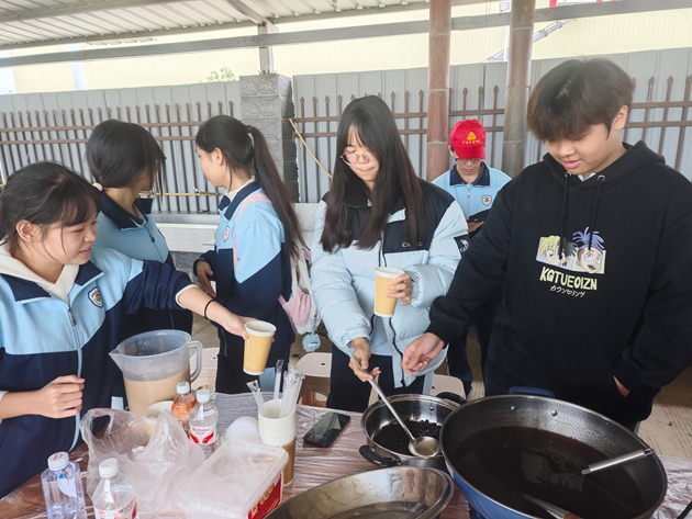 珍珠奶茶制作环节为研学之旅拉开暖心序幕。指导老师细致讲解珍珠熬煮的火候把控、茶底萃取的时间节点与奶液调配的黄金比例,从原料特性到操作禁忌逐一细致讲解,辅以现场示范让理论知识变得直观可感。在老师的悉心引领下,同学们分组协作、有条不紊,搅拌熬煮间,颗颗珍珠渐显软糯Q弹;经精准配比,茶香与奶香完美交融。指尖翻飞间,一杯杯香气氤氲的珍珠奶茶新鲜出炉,每一口甜润都承载着手作的温度,同学们在沉浸式实践中收获新技能,于味蕾的满足中收获满满的成就感。