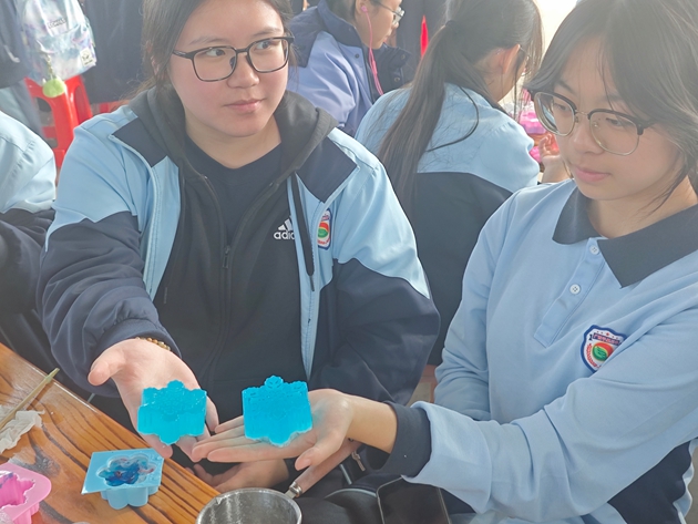手工皂创作环节,尽显少年创意与匠心。从理解制作原理到动手操作,同学们在老师的讲解与指点下逐步探索手工皂的奥秘。同学们充分释放想象力与创造力,在融化的皂基中融入心仪的色彩与香气,精心勾勒造型纹样,小心翼翼入模定型。待皂体凝固脱模,一块块色彩斑斓、造型别致的手工皂惊艳亮相,或清新雅致、或灵动可爱、或简约大气,每一件作品皆是创意与巧手的结晶,同学们在指尖劳作中感受手工艺术的独特魅力,深刻体悟创造带来的无限乐趣。