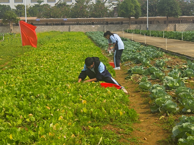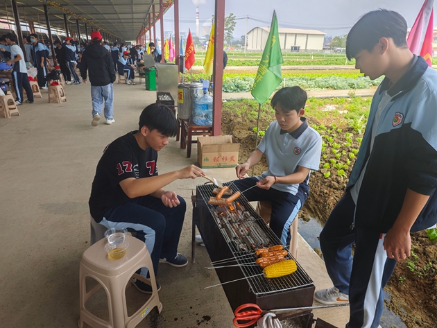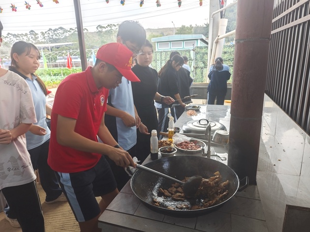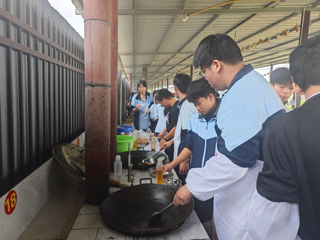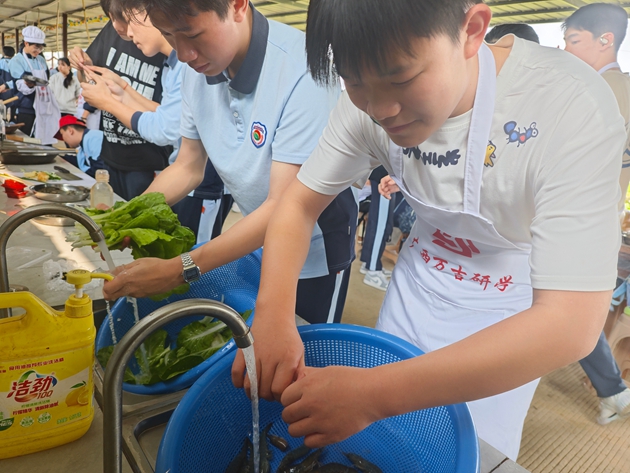 厨王争霸赛的开展,将研学氛围推向高潮。在厨房区与青菜园组成的实践天地中,同学们以小组为单位展开精彩厨艺比拼。大家分工明确、默契配合,有人穿梭菜园采摘新鲜食材,有人专注择洗切配,有人掌勺精准掌控火候,灶台间火光跳动,锅铲碰撞声与欢声笑语交织成悦耳乐章。新鲜蔬果与地道食材在同学们的巧手下,纷纷化作一道道色香味俱全的佳肴,餐盘里的美味既彰显着动手能力的显著提升,更凝聚着团队协作的深厚力量,烟火气中满是劳动的喜悦与集体的温暖。