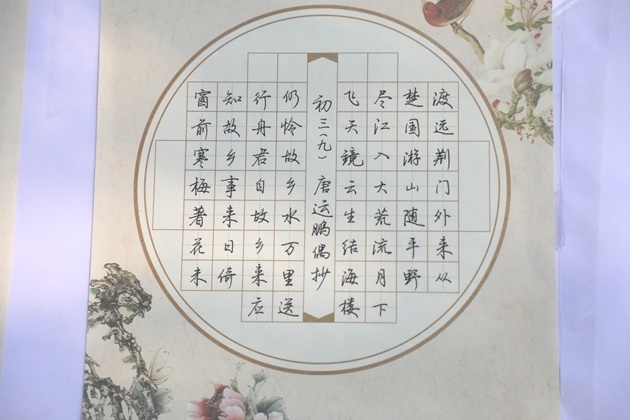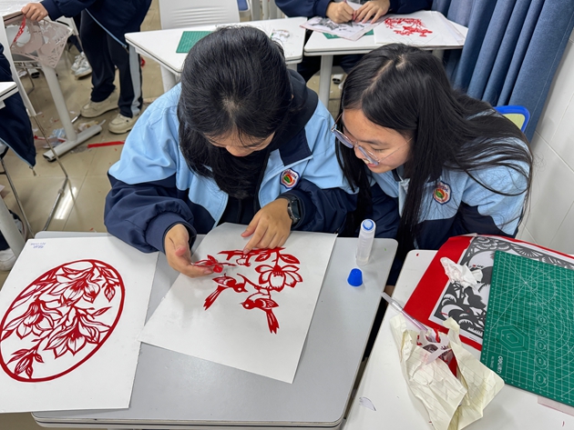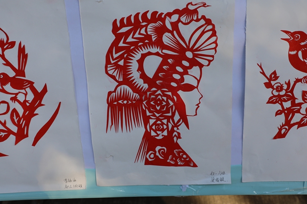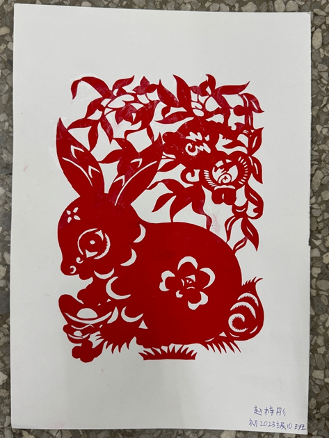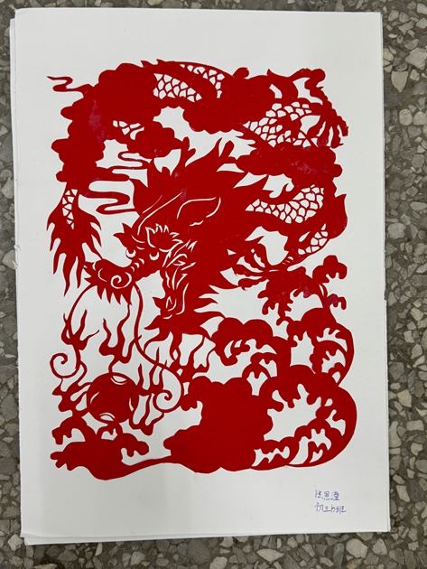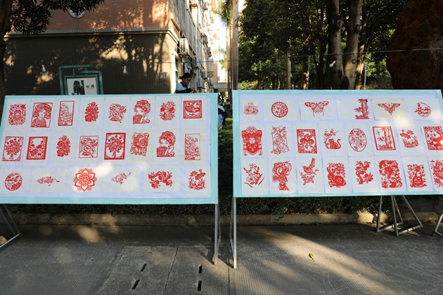 剪纸作品更是吸睛无数,灵动的花鸟鱼虫、喜庆的福字窗花、栩栩如生的人物剪影,皆由同学们以剪刀为笔、红纸为纸,在折叠与裁剪间幻化出万千姿态,精巧的纹路、生动的造型,尽显传统技艺之美。观展师生频频驻足,细细品味,不时发出由衷的赞叹。