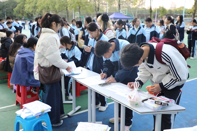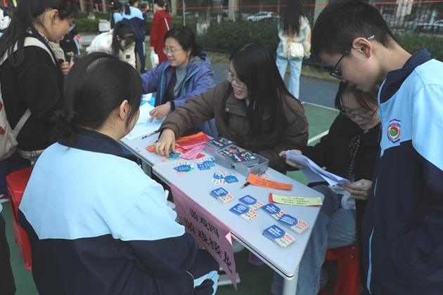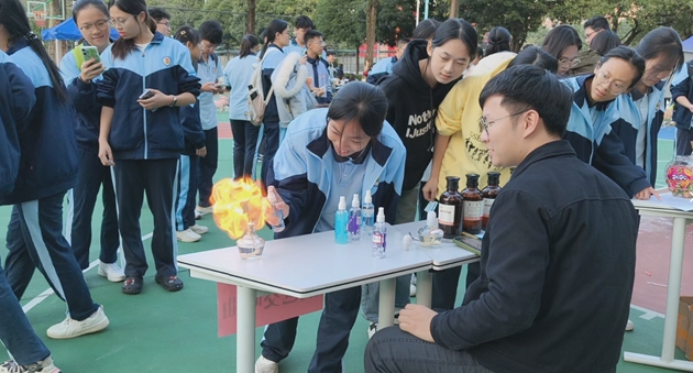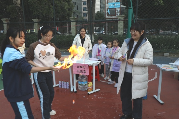 校园文化艺术节游园活动在篮球场欢乐开启,七大特色游戏轮番上阵,丰厚奖品等你来赢。在这里,你可以在"焰色交响曲"中见证化学元素的绚丽变色,在"一起来找茬"里比拼眼力与细心;挑战"正字反写"考验手脑协调,参与"游戏接龙"解锁知识乐趣;还有"夹纸运杯"的默契协作、"蒙眼原地踏步60秒挑战"的爆笑考验.以及酷炫的"火焰掌"实验带来的视觉震撼。每一项游戏都兼具趣味与挑战,完成挑战即可兑换奖券,徐福记棒棒糖、 QQ 糖、热烤鸡肉串等零食好物,还有精致笔记本,只要参与就有机会收入囊中!这场集趣味、知识、互动于一体的游园活动,为校园增添别样的艺术色彩。