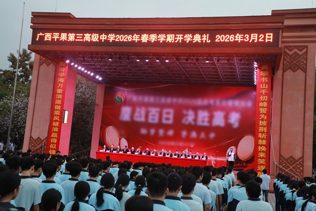 春风浩荡满目新,策马扬鞭再出发。本次春季开学典礼,既是一次凝心聚力的动员,更是一次奔赴未来的启航。新的学期,新的征程,平果三中全体师生将以马年的昂扬与奋进,守初心、深扎根、勇拼搏、向未来,把每一份期许化作前行的力量,在深耕中成长,在奋进中绽放,共同书写三中校园发展与师生成长的精彩答卷!