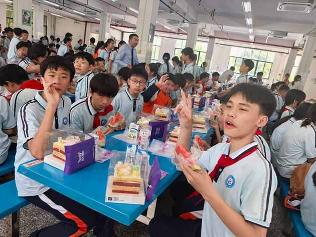 中午时分,清甜的香气在食堂里轻轻弥漫。精心准备的小蛋糕、温热醇香的牛奶等美味午点,搭配着温馨有序的用餐氛围,让孩子们在舌尖的甜意里,感受着三中细致入微的关怀。奶香与笑语交织,成为这场春日探访里最动人的注脚。