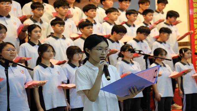桃香沁脾,薪火相传。《以青春之名,赴时代之约》《崛起中国》等经典篇目,在学子们的深情演绎中,化作一声声对祖国的深情赞颂,让爱国情怀在桃花芬芳中悄然浸润;他们时而激昂澎湃,时而温婉深情,抑扬顿挫的语调、真挚饱满的情感、自然得体的肢体语言,不仅展现了扎实的双语功底,更彰显了新时代中学生朝气蓬勃、奋发向上的精神风貌。台下掌声此起彼伏,桃花香与少年志交织,成为校园里最动人的春日风景。