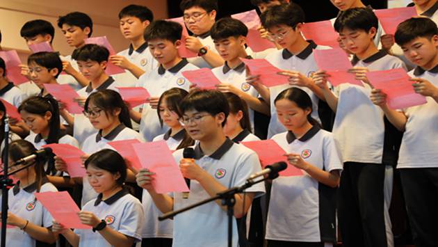 黄尚泽董事长、高文广校长、谢炬燊副校长、黄春彬副校长、杨琦副校长、黄伟顾问莅临现场。本次大赛评委由英语组和语文组老师担任,老师们秉持公平、公正、公开的原则,从内容表达、语言功底、舞台表现、情感传递等多个维度进行综合评分。