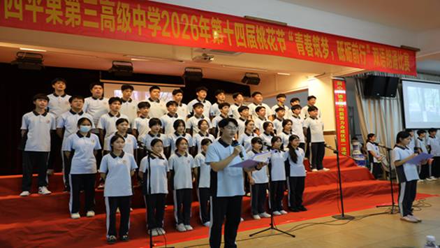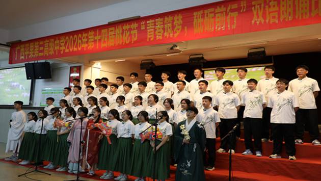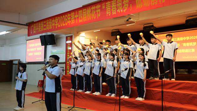 春和景明,桃芳满园;青春筑梦,声动校园。在这桃花灼灼、春意盎然的美好时节,为丰富校园文化生活,厚植学生爱国情怀,提升双语表达能力,引导青年学子以青春之姿砥砺前行,2026年3月30日,我校高一年级第十四届校园桃花节“青春筑梦,砥砺前行”双语朗诵比赛如期举行。师生共同见证这场融语言之美、青春之力、爱国之情于一体的视听盛宴。
