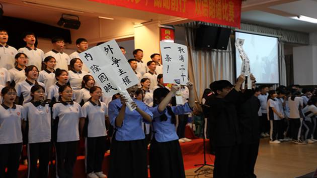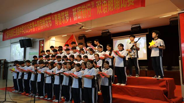 青春如歌,韶华飞扬。《将进酒》《春颂》《青春属于我们》《二十而冠,青春当燃》《礼赞・青春》《Youth belongs to us》《Dream》等精彩作品,双语版的青春励志篇章,字字句句饱含力量,将青年学子“青春筑梦,砥砺前行”的信念展现得淋漓尽致。成为本次双语朗诵比赛中亮眼的风景。同学们以饱满的精神、昂扬的姿态,用中英文交织的语言,将少年人的青春热忱与奋进之志娓娓道来、慷慨抒发。