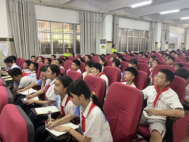 专题讲座环节温情满满、干货十足。本次讲座在我校报告厅举行,由我校阮国辉副校长主讲,团委副书记陈炎锋老师主持。阮副校长以亲切生动的语言,围绕我校的教学管理、办学成就、校园活动、社团生活等内容展开分享,用通俗易懂的讲解、鲜活有趣的照片和视频,为孩子们展示了我们三中的美丽与魅力。孩子们端坐静听、全神贯注,时而认真记录,时而踊跃互动,在聆听中汲取智慧,在交流中坚定信念,一颗颗追梦的种子在心田悄然萌芽。