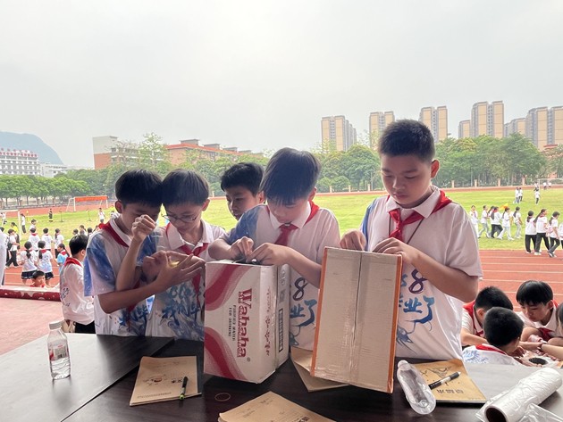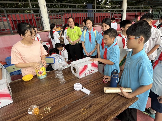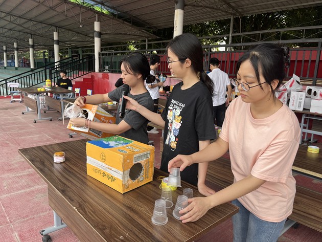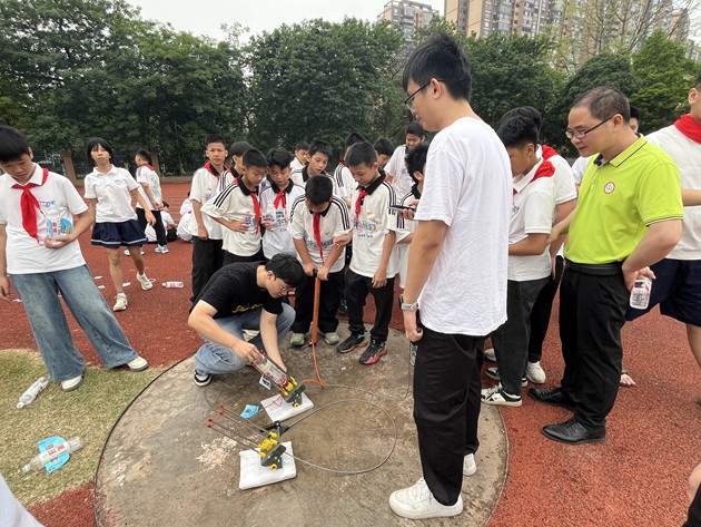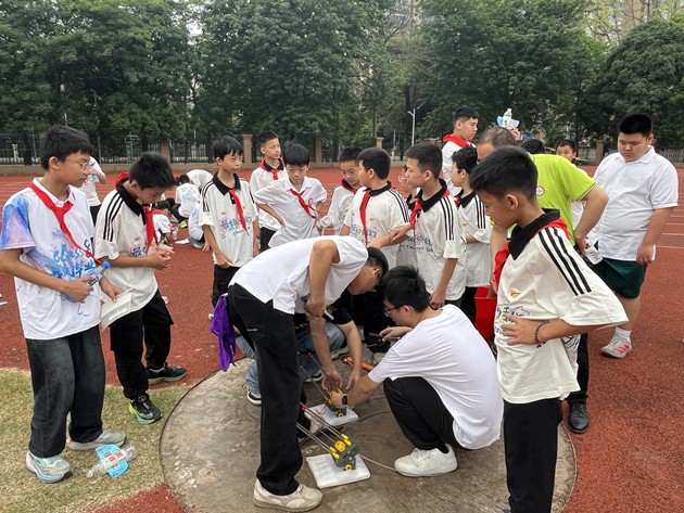 素质拓展活动现场暖意融融、活力四射。物理小实验课堂率先点燃热情,在我校物理组老师们的精彩演示下,奇妙的纸杯飞行、空气炮、水火箭等趣味物理实验让孩子们惊叹不已。大家目不转睛、认真观察,踊跃动手尝试,在探索中感受科学的奥秘,点亮心中的科学梦想。