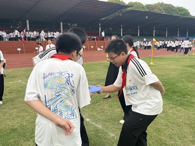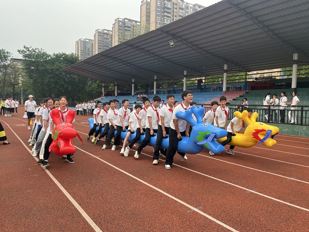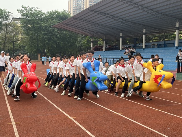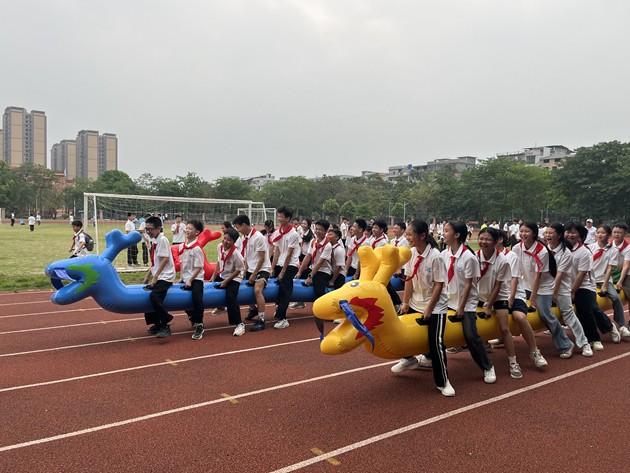 旱地龙舟比赛精彩纷呈,孩子们分组跨上色彩鲜艳的 “龙舟”,手抓扶手、步调一致,齐声喊着口号奋力向前。整齐划一的步伐、齐心协力的呐喊,不仅锻炼了大家的团结协作能力,更让孩子们体会到凝心聚力、携手共进的快乐,一张张笑脸洋溢着青春的朝气。