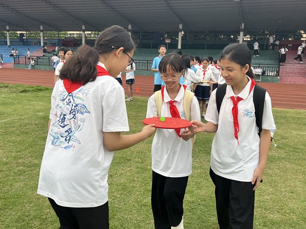 盲人敲锣游戏则充满智慧与默契。孩子们蒙眼感知、相互配合,在信任与沟通中完成挑战,不仅锻炼了感知能力和应变能力,更学会了倾听与互助,懂得了团结协作、换位思考的重要意义。