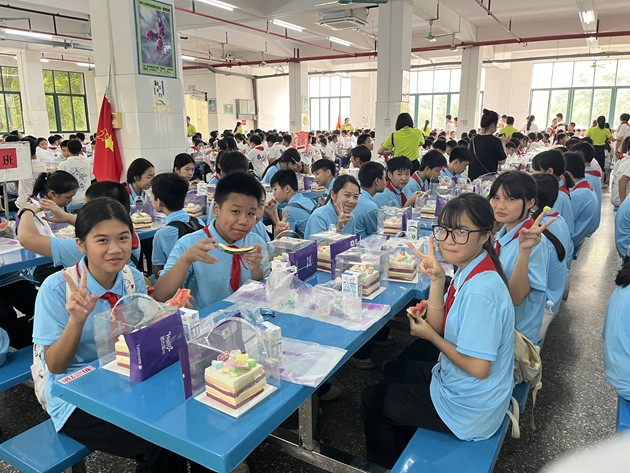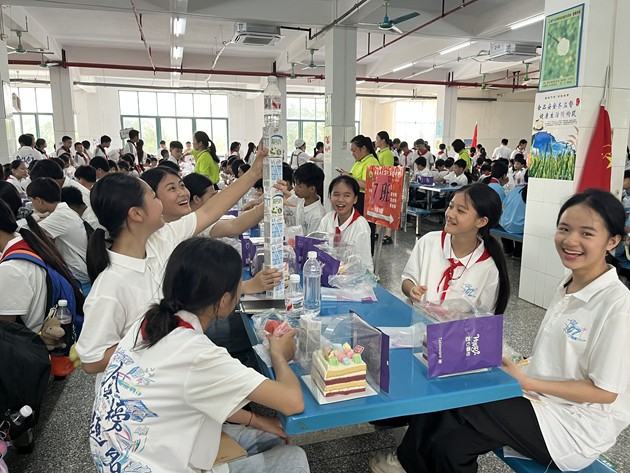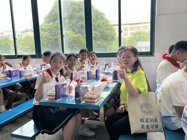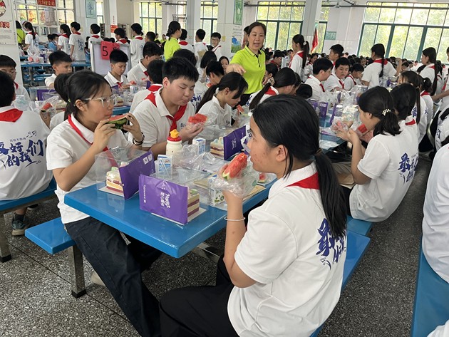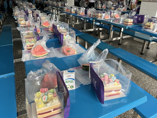 步入食堂,宽敞明亮、干净温馨的环境让孩子们倍感亲切。阳光透过窗棂洒落,桌椅整齐排列,处处洋溢着轻松愉悦的氛围。在老师的热情引导下,孩子们有序就座,一双双好奇的眼睛里,满是期待与欢喜。学校食堂为孩子们准备了清甜的西瓜、精致小蛋糕等简餐,在果香与甜润中,孩子们度过了一段轻松愉快、温暖难忘的美好时光。